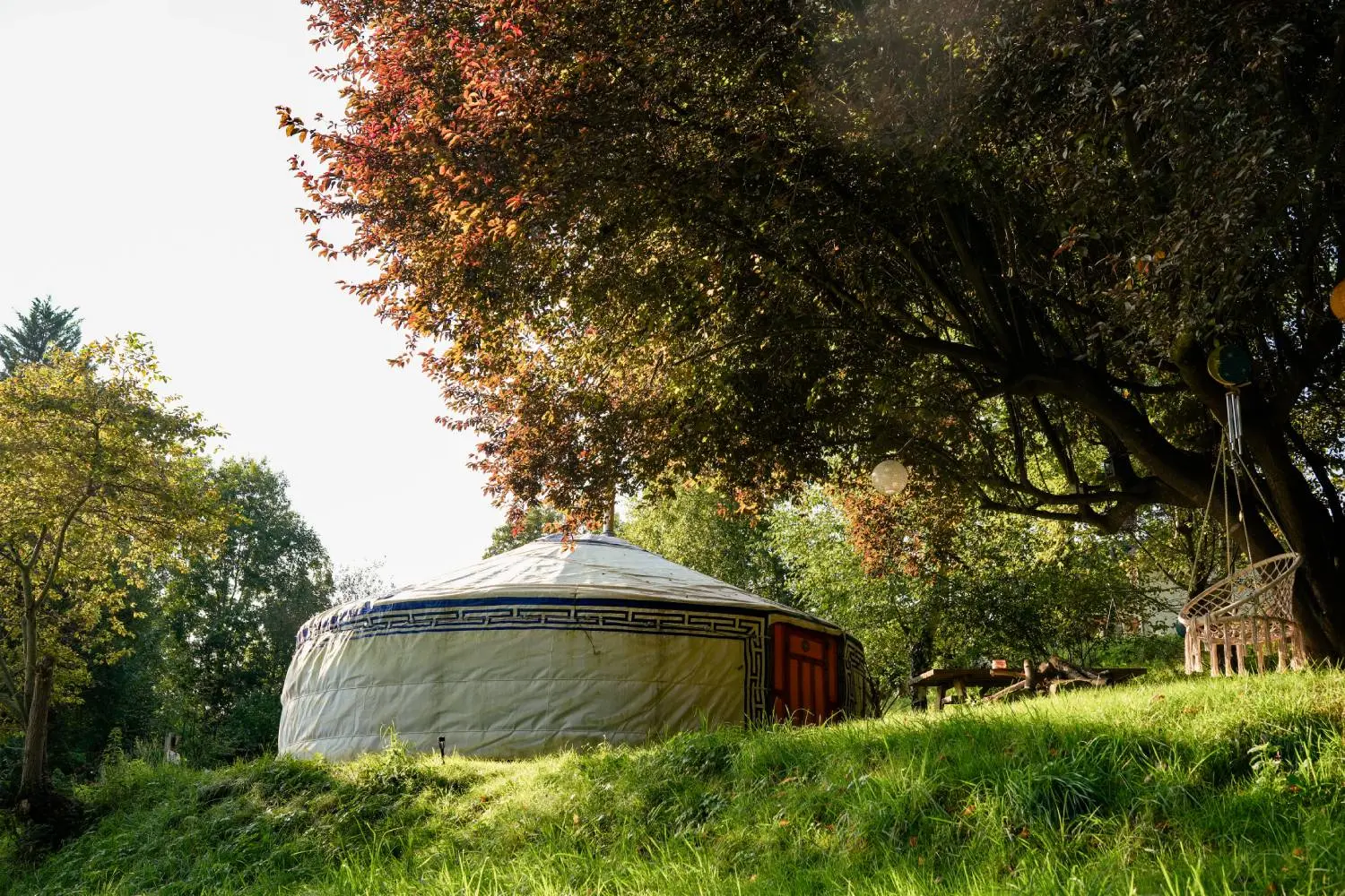 La yourte est équipée d’un espace cuisine à l’intérieur, de son propre barbecue à l’extérieur et de sanitaires privés pour votre confort et votre intimité.
