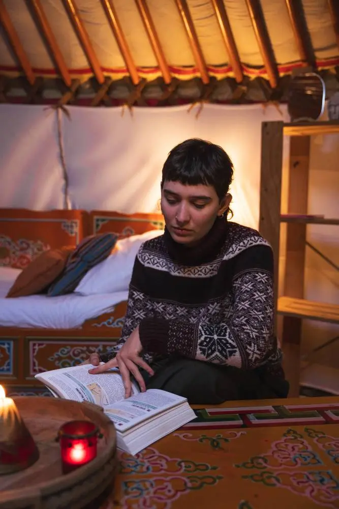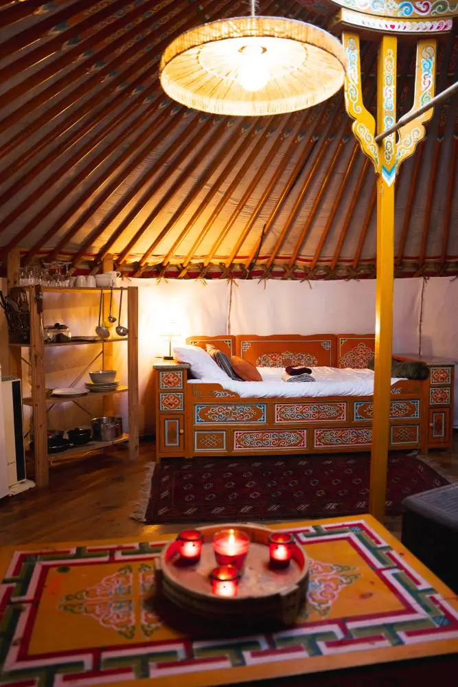 Laissez-vous bercer par les sons de la nature dans ce logement unique. Notre yourte mongole peut accueillir confortablement jusqu’à quatre personnes, avec draps et serviettes de bain compris, offrant un espace chaleureux et convivial parfait pour des moments en famille ou entre amis.